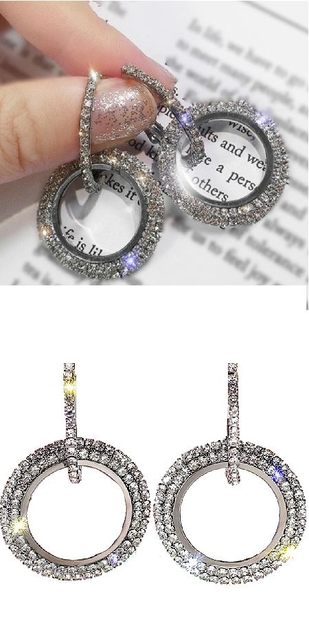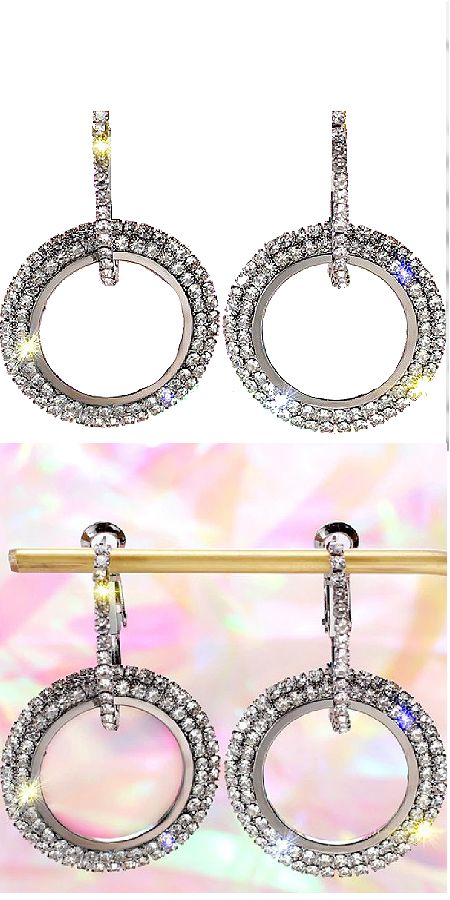 Cercei argintiu-inchis cu strasuri (rotunzi) - 5 buc Dimensiuni: one size - lungime 4,2 cm, latime 1,2-2,7 cm Materiale: aliaj metalic, strasuri