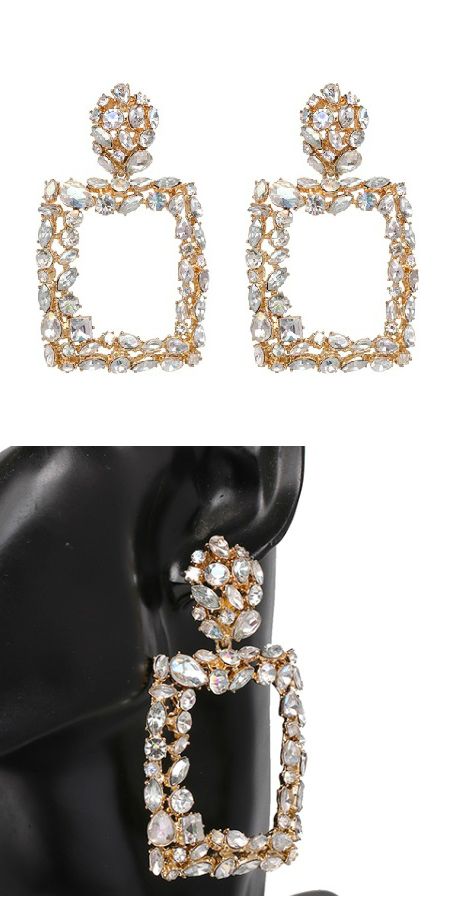 Cercei aurii cu cristale albe - 2 buc Marime disponibila: one size - dimensiuni 4,5 x 8 cm Materiale: cristale, strasuri, aliaj metalic Produse recomandate
