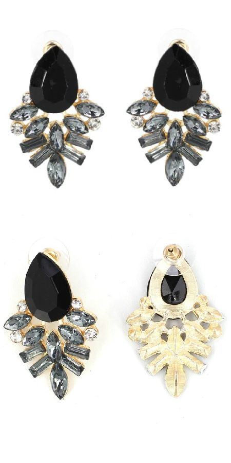 Cercei cu cristale negre si gri si strasuri albe - 2 buc Marime disponibila: one size - dimensiuni 2,5 x 4 cm Materiale: cristale, strasuri, aliaj metalic Produse recomandate