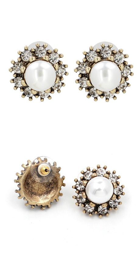 Cercei cu perle si strasuri - 2 buc Marime disponibila: one size, dimensiune-diametru 2,4 cm Materiale: imitatie perle, strasuri, aliaj metalic Produse recomandate
