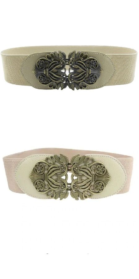 Curea bej elastica - catarama aurie antique (3b) Marime: one size - lungime 63 - 100 cm, latime 6 - 7 cm Material: elastic, aliaj metalic, piele ecologica