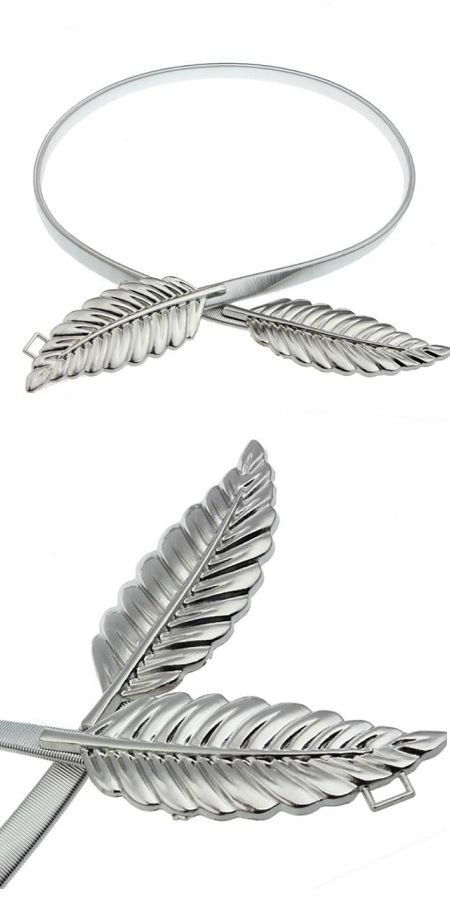 Curea argintie elastica, catarama doua frunze