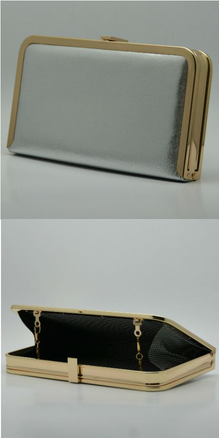Plic de seara argintiu cu metal auriu Dimensiune: lungime 25 cm, latime 14 cm, inaltime 3 cm. Materiale: poliester, aliaj metalic. Produse recomandate